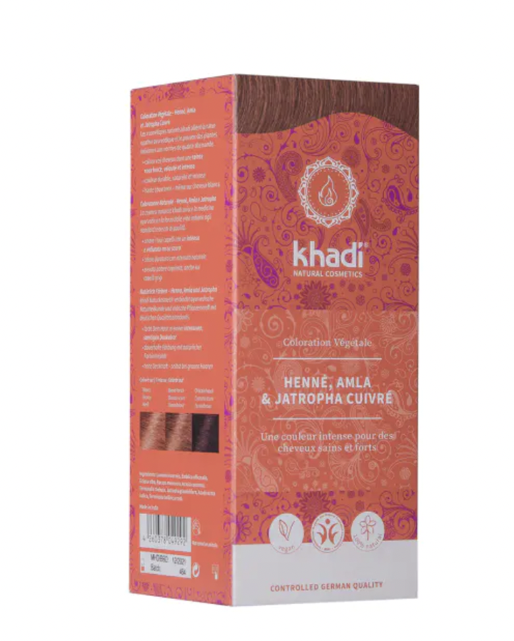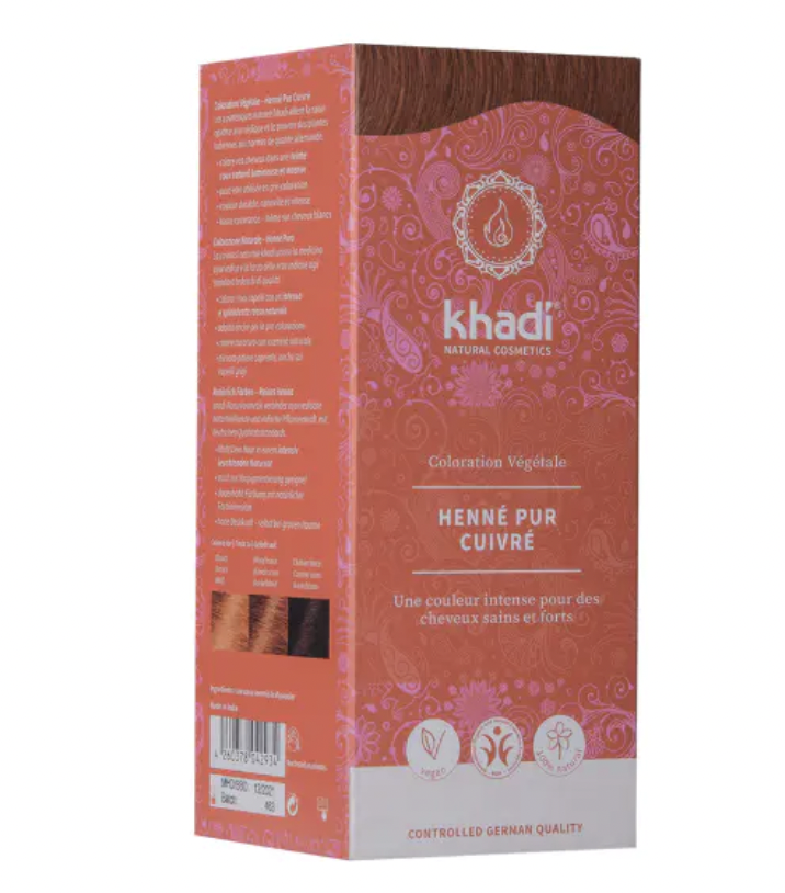 Dans un second temps je pose le henné pur durant 2 à 4 heures suivant l’intensité voulue. Une fois le henné rincé, je fais un shampooing et durant 5 jours je laisse le henné s’oxyder. Une fois par semaine je fais un bain d’huiles avec du monoi, de l’huile de coco et l’huile Khadi que je vous indique en dessous.